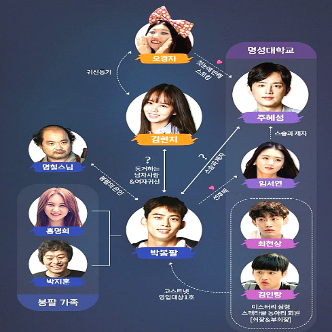 - 김현지(김소현) : 기억을 잃은 귀신. 5년째 기억을 잃고 떠도는 여고생이다. 다른 귀신들은 1년에 한번씩 제사밥을 먹지만 본인은 아무도 챙겨주지 않아 제사상을 받아본 적이 없다.