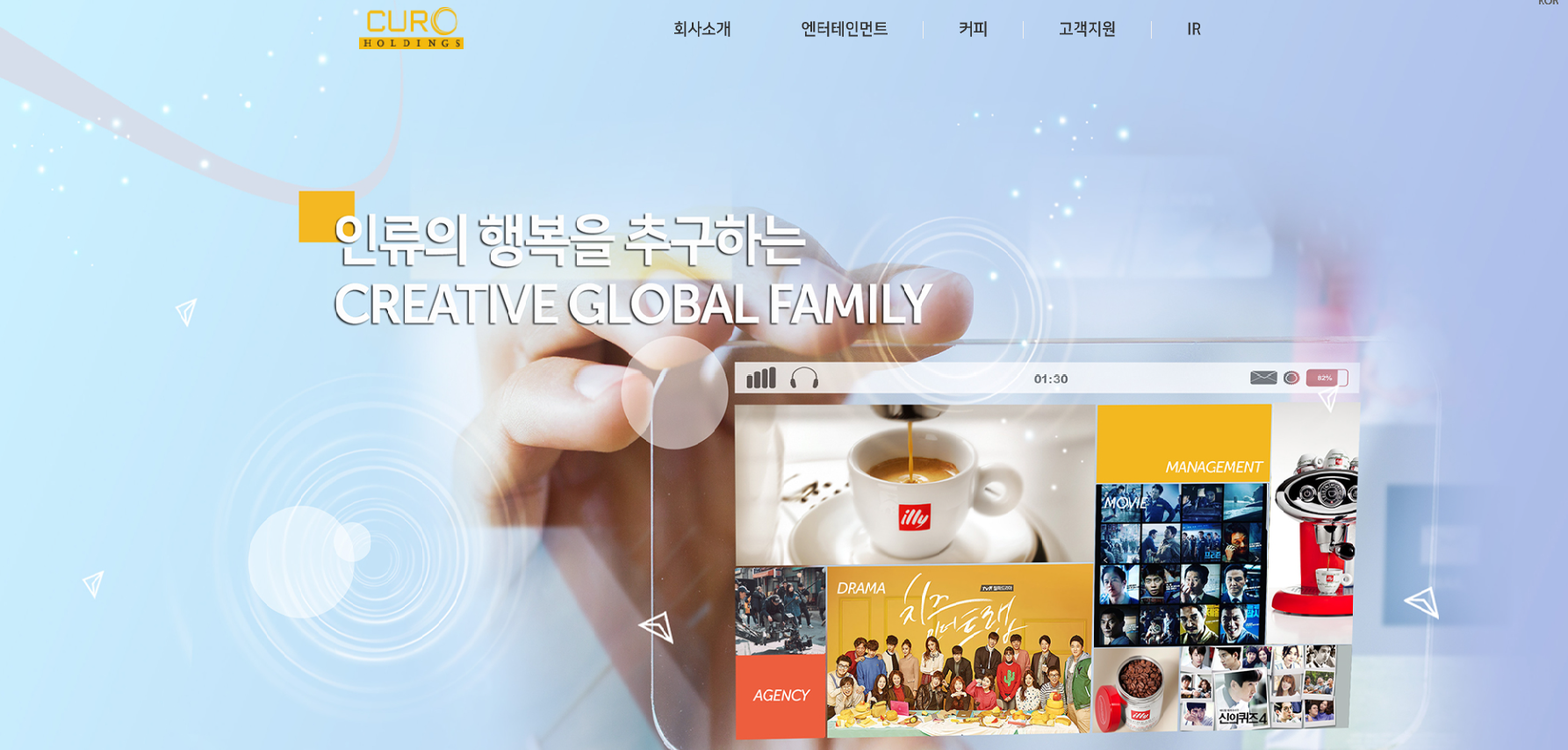 (주)큐로홀딩스는 1985년 회사설립을 시작으로 현재는 크게 커피사업과, 엔터테이먼트 사업을 하고있습니다.