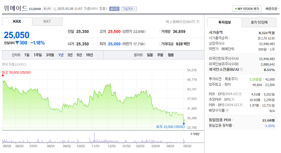 - 종목명: 위메이드 (Wemade)